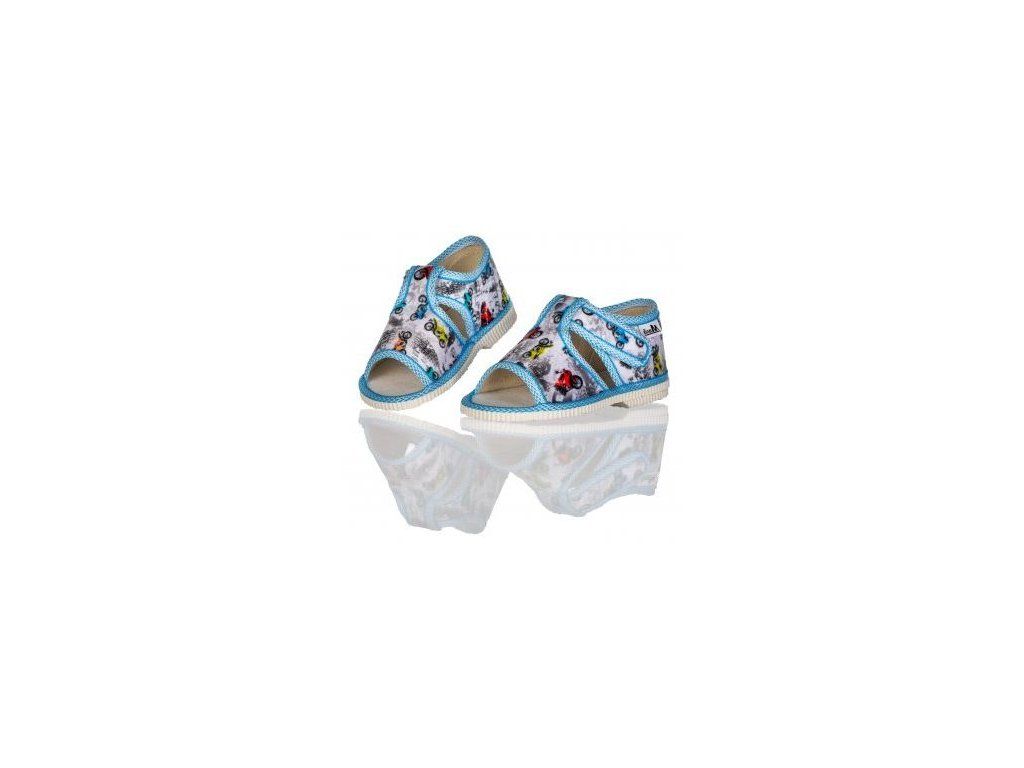 Detské sandálkové papučky s uzavretou špicou, so zapínaním na suchý zips. Jednoduché zapínanie ideálne aj pre našich najmenších. Papučky sú vyrobené z ľahkých a pružných materiálov, a v klenbovej časti sú vystužené ideálne tuhou penou pre podporu zdravého vývoja detskej nožičky. Strih papučiek je prispôsobený detskému chodidlu, aby nespôsobovali deformáciu pri vývoji chodidla. Sú určené pre používanie v interiéri.