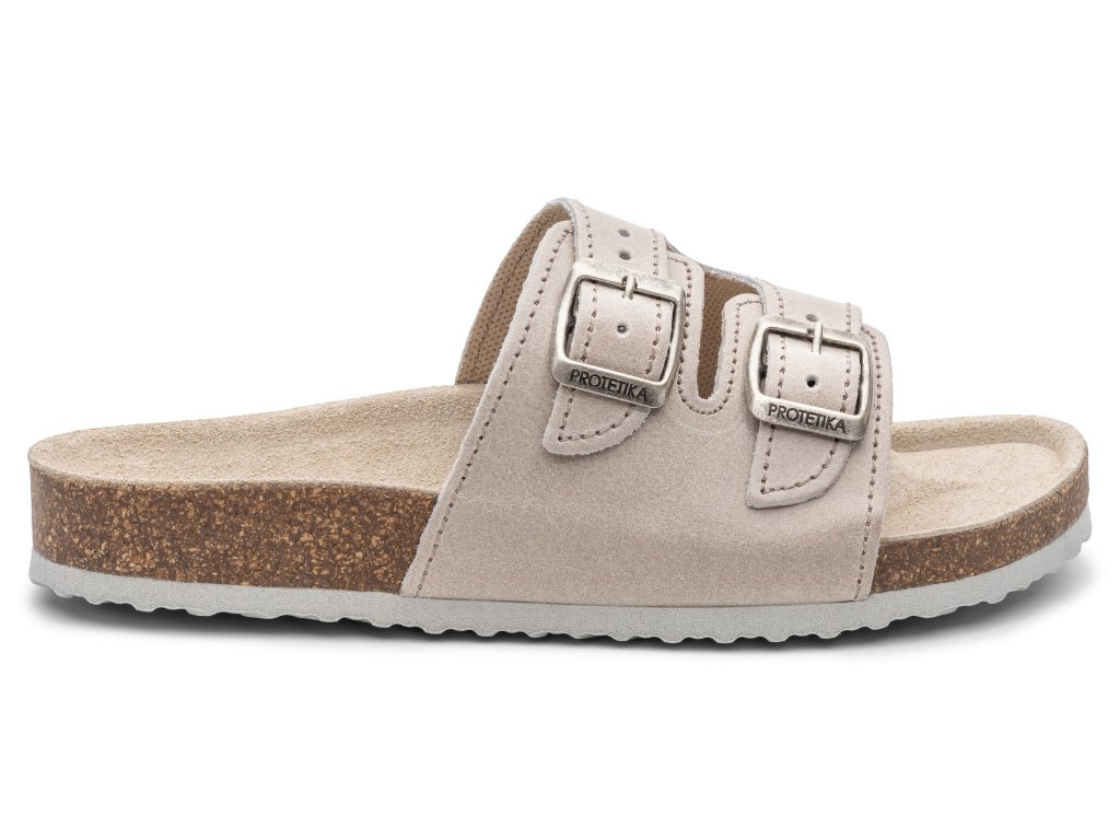 Sandále majú dvojprackové zapínanie, ktoré umožňuje rýchle a pohodlné prispôsobenie remienkov podľa potreby. Zvršok je vyrobený z kvalitnej prírodnej kože a anatomicky tvarovaný výlisok je z prírodného korku. Stielka so širokou prstovou časťou a pätovým lôžkom zabezpečuje prirodzené rozloženie váhy tela a stabilitu chodidla pri chôdzi. Podpora priečnej a pozdĺžnej klenby chodidla aktívne prispieva k prevencii plochonožia.